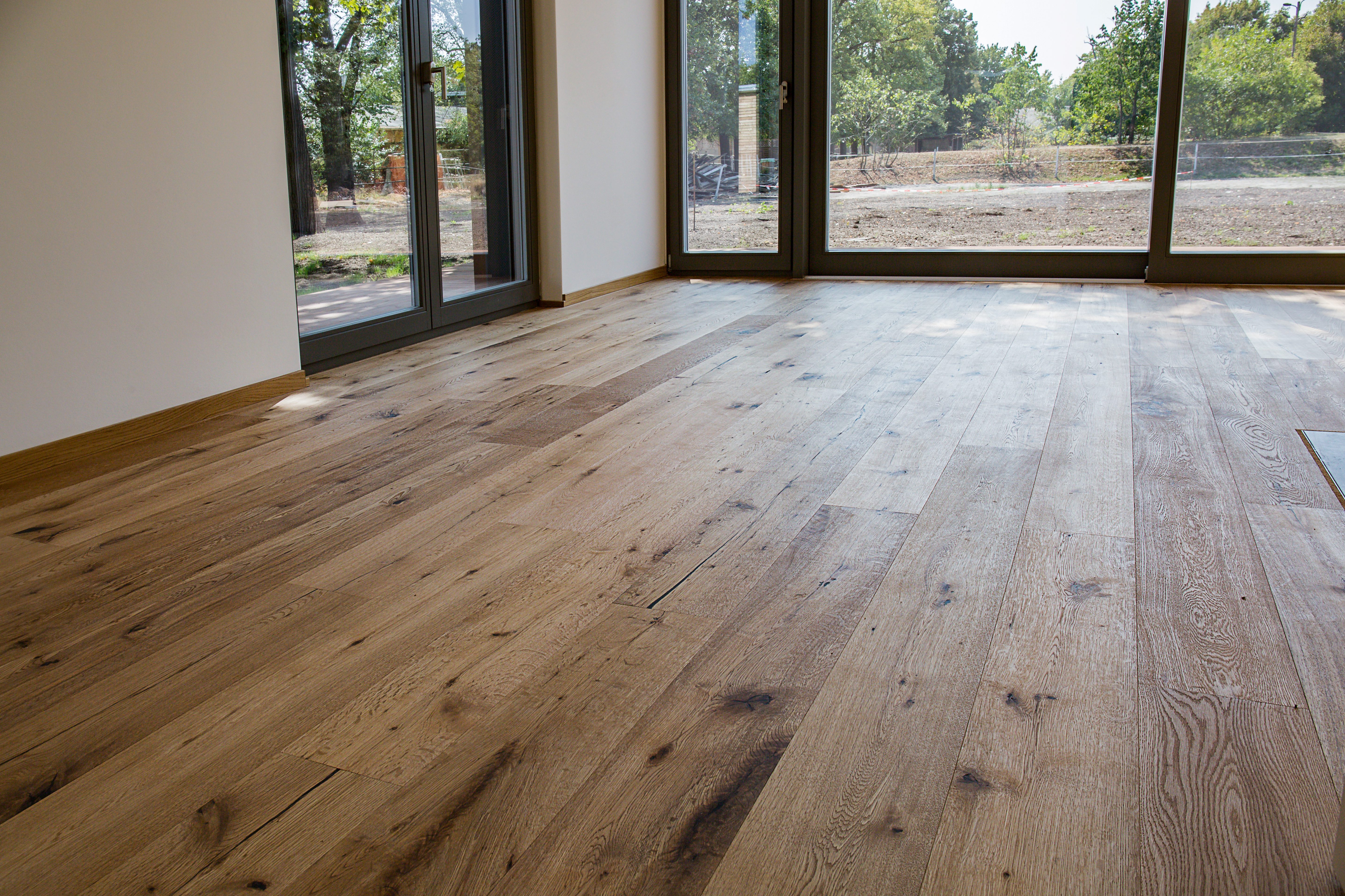 Größe:700 m²Material:Dreischichtparkett ParatDesign:Eiche vintageShare